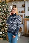 Джемпер жен шерсть 44-54 джинс+белый КРВ ж0595х - 0